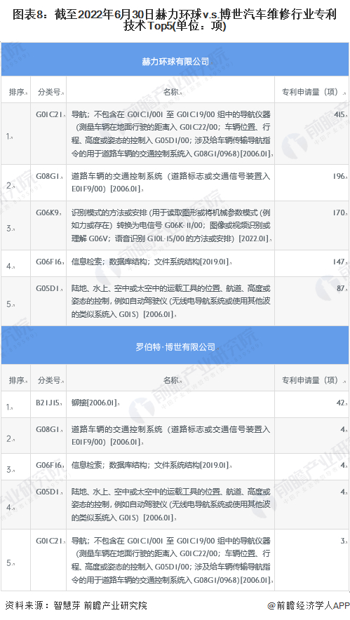1、全球汽车维修竞争格局:赫力环球和博世为全球汽车维修专利申请龙头之二