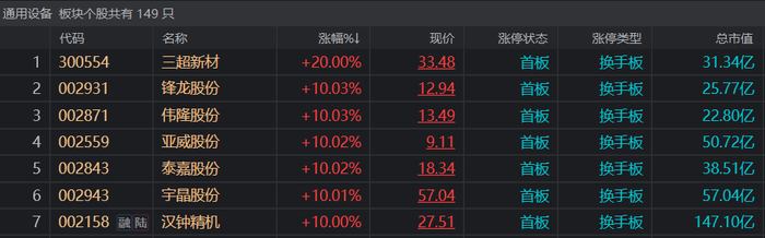 13天股价翻倍!三超新材20cm封板涨停,火热赛道概念加持,设备端景气有望崛起