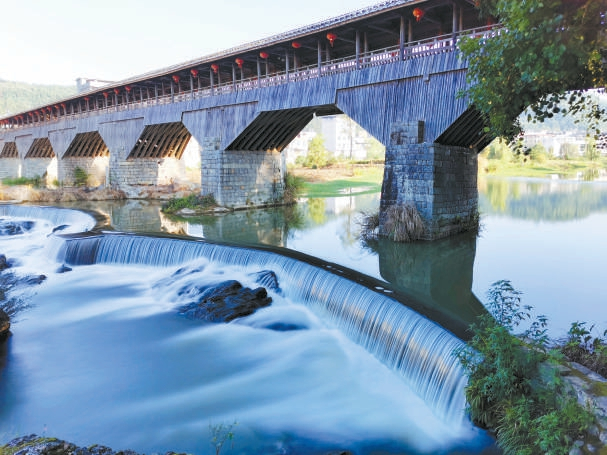 据记载,位于屏南县长桥镇长桥村的万安桥,为五墩六孔木拱廊屋桥。桥长98.2米、宽4.7米,舟形墩,不等跨,最短拱跨为10.6米,最长拱跨为15.2米。桥屋38开间、用柱156根,穿斗式木构架,双坡顶,两侧设木凳。作为国内现存最长的贯木拱廊屋桥,万安桥在我国古代桥梁建筑科学技术史上具有重要价值。
