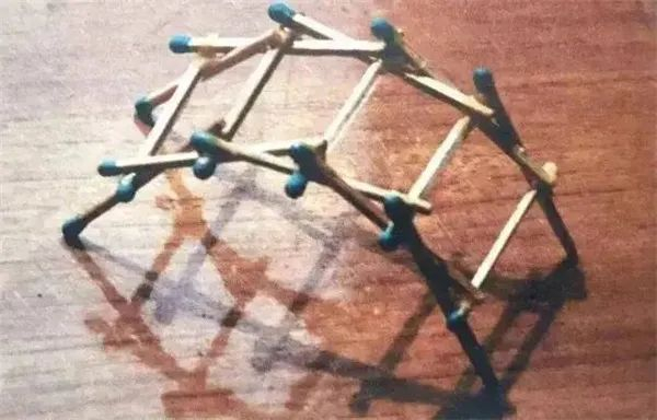 (唐寰澄以火柴棍示意的汴水虹桥的结构体系。图来自唐寰澄《中国木拱桥》)