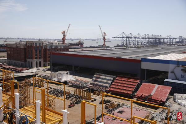 与薄板生产智能车间比肩而立的邮轮总组场地。