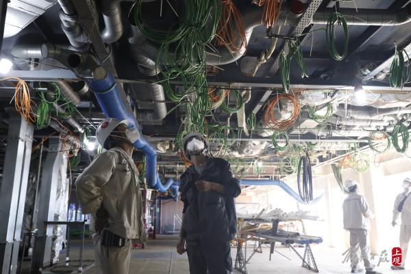 目前,首艘邮轮正在进行内装修和系统调试。目前全船30多个内装项目总包,已有超过85%的项目已开工。已开工的项目中,明火作业已全面开展施工,工作量的60%已完成。同时,住舱区域,船员餐厅,洗衣区域,集控室,餐饮冷库区域等均已开展壁板及天花板封板工作。