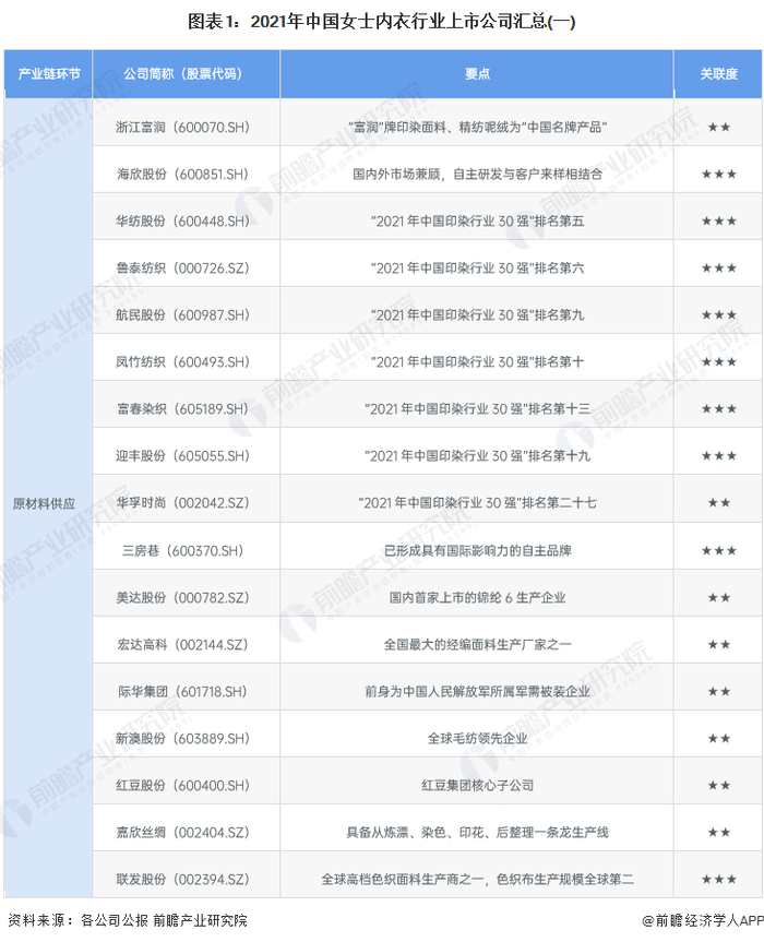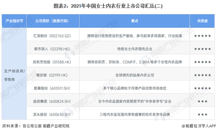 1、女士内衣行业上市公司汇总
