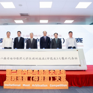 2022年8月5日下午,第二届内地与港澳大学生模拟法庭(仲裁庭)大赛启动仪式线下环节在位于虹口北外滩的厦门国际银行大厦顺利举行。恰逢香港回归祖国25周年,本次赛事以法治文化交流为核心,以培育青年人才为目标,旨在切实增强内地与港澳青年的宪法意识、公民意识、爱国意识和民主法治意识,以全英文模拟仲裁庭的比赛形式提高三地学生的书状撰写能力和庭审抗辩技巧,助力具有不同教育背景的三地青年学子增进了解、并肩成长、增强合作,为国家培养新时代涉外法律高端人才。