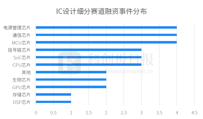按照应用场景分类,本周最受投资人追捧的芯片设计细分赛道包括电源管理芯片、MCU芯片、通信芯片等。