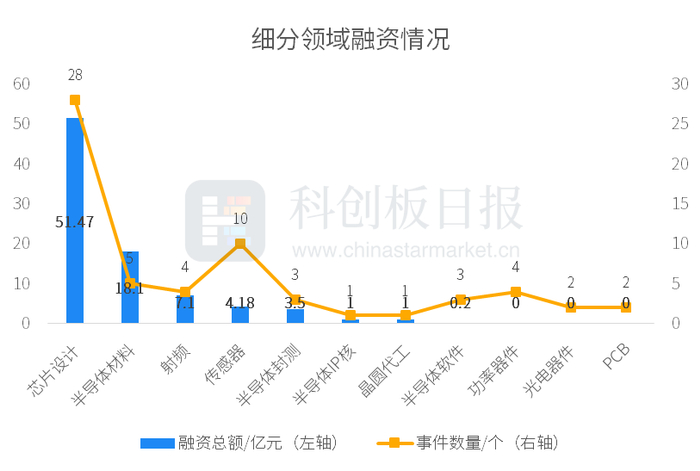 从投资事件数量来看,7月芯片设计领域最为活跃;从融资总额来看,芯片设计赛道披露的融资总额最多,约为51.47亿元。