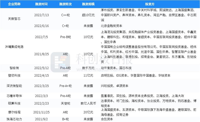 7月国内半导体赛道有24家公司获投超亿元,披露具体融资金额的企业中有3家超过10亿元。下面列出部分值得关注的投资事件: