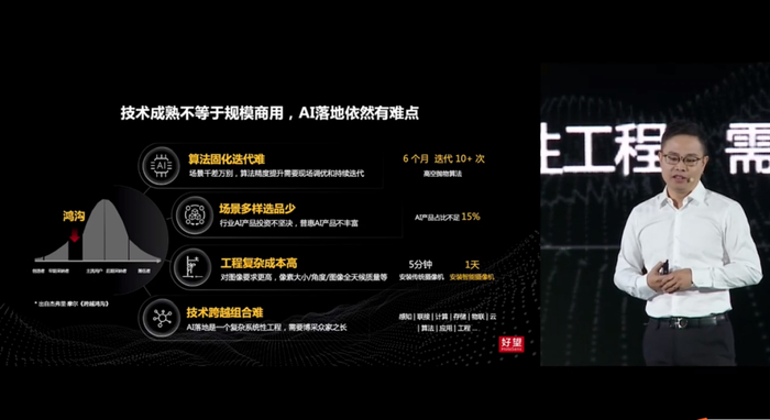 随着人工智能蓬勃发展,AI技术日渐成熟,但是技术成熟不等于规模商用。华为机器视觉军团CTO&COO、华为机器视觉产品与解决方案总裁段爱国在发布会上直言,AI落地面临如算法固化迭代难、场景多样选品少、工程复杂成本高、技术跨越组合难等诸多挑战。