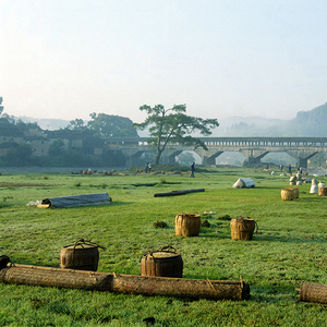 2005年5月5日,福建屏南,万安桥下水位下降,桥下长期露出的大片河滩成了当地村民放养耕牛的好地方。