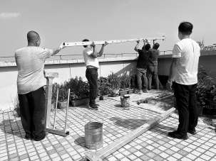 “小区作业面窄,楼又高,无法用吊车,施工人员只能搭吊篮向楼顶运输建材!”张燕鹏告诉记者,破坏容易恢复难,修复工程施工难度很大,需要持续半个月左右,考虑到小区中不少孩子9月开学恢复上课,为了让修复工程赶在孩子们上课前完成,只能选择冒着酷暑施工。