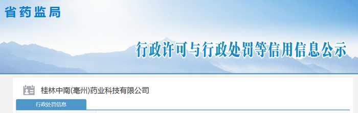 安徽省药品监督管理局发布对桂林中南(亳州)药业科技有限公司行政处罚信息