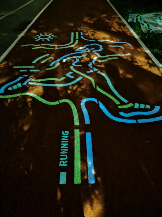 除了这些科技感十足的智能化升级,Keep还为奥森公园内全程10公里跑道进行了全路段改造。原有的设施陈旧、路面老化破损、指引不明等情况被一一解决。现在,奥森全程10公里的跑道,已经修整一新。跑道两侧的伴跑牌,精准地提醒着跑者剩余公里数。全新的跑道不仅印有‘跑道的诗’,5公里路程过半时,跑道上会出现跑步、篮球等运动造型的彩色线条。白天看起来平平无奇,但夜跑的时候,跑者能看到不一样的夜光图案。