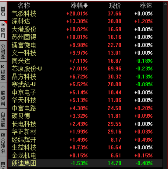 8月8日,同花顺新设置了先进封装(Chiplet概念)板块,目前有20只个股入选,今天有多只涨停,其中气派科技20cm、深科达3天暴涨56%,大港股份6连板、通富微电3连板。今天资金回流科技股,先进封装板块也是资金优先选择的对象。