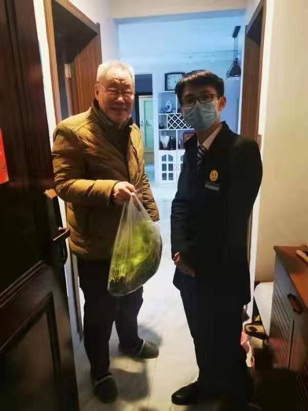 疫情期间为长者送菜,协助门岗检测体温。