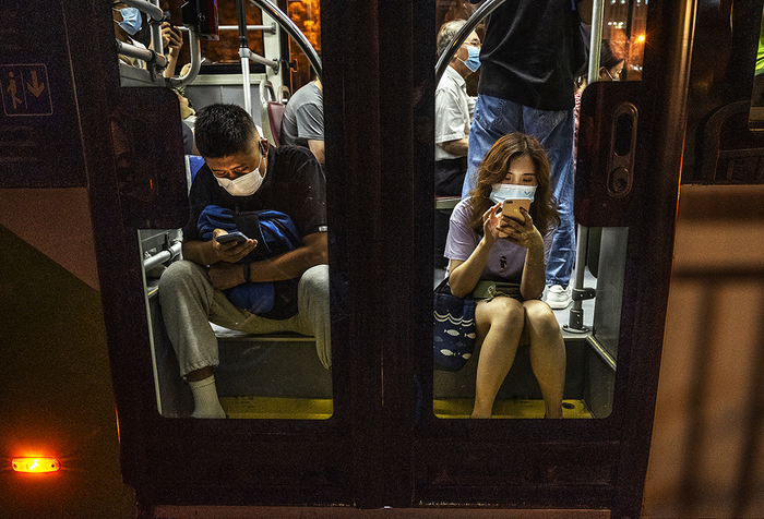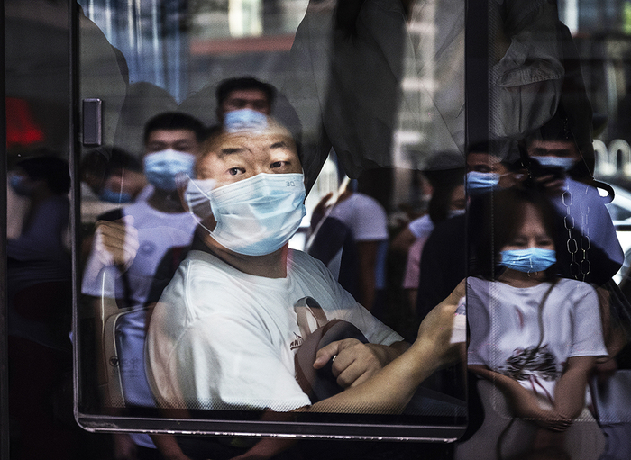 2021年8月4日,北京高峰期间,车窗里的人。