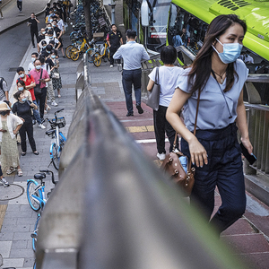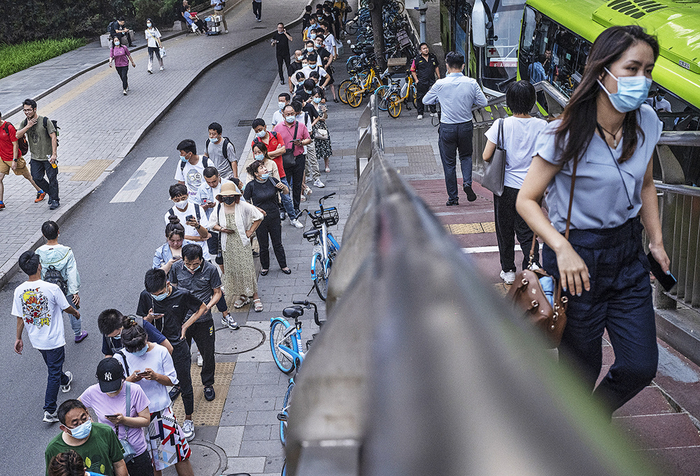 2021年8月4日,北京高峰期间,通勤路上的人。