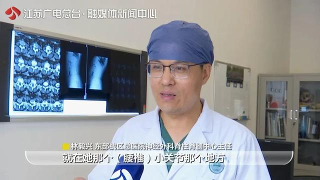 仔细查看吉女士的检查报告后,东部战区总医院神经外科脊柱脊髓中心主任林毅兴发现了问题,“我很仔细地再看了下片子,就在她腰椎小关节那个地方,一边显得稍微宽一点、毛糙一点,感觉是有问题的,是一个小关节滑膜嵌顿。小关节松弛后滑膜进去了,滑膜本身有比较丰富的神经痛觉感受,卡住以后就非常痛。”
