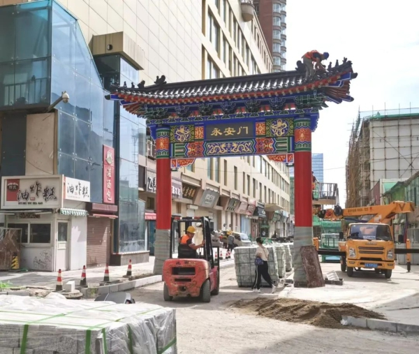 日前,中国吉林网来到商街的施工现场看到,将原有沥青路改为4米宽的马蹄石人行道,全长约700米,整条商业步行街将限制车辆通行,来满足人行逛街、美食购物的需求。此次改造设计手法与周边的历史文化建筑相呼应、协调,使街区形成一致的建筑风格。