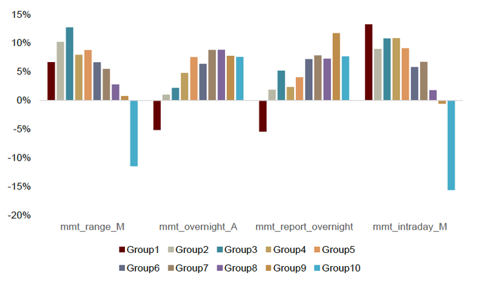 隔夜涨幅表现为动量,日内涨幅表现为反转