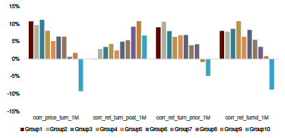 我们认为,价量因子的收益来源主要有三方面,一是通过捕捉由于噪音交易者反映过度(或反应不足)造成的错误定价所带来的投资机会;二是追随“聪明资金”,获取基本面改善带来的超额收益;三是承担了特定的风险,获得风险补偿收益。