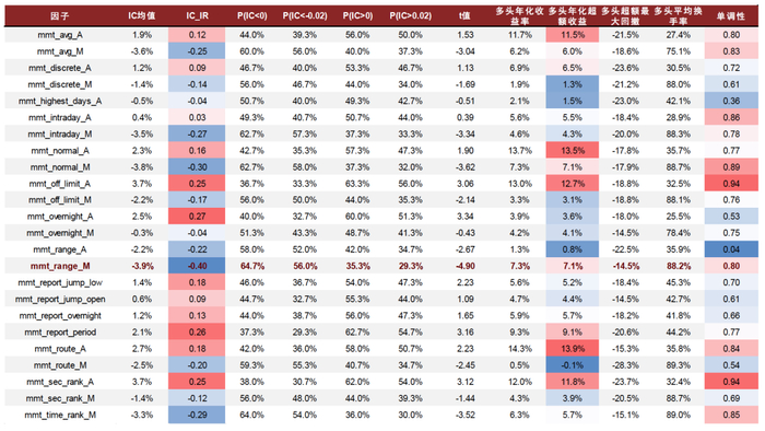 综合来看,mmt_range_M因子整体表现优异。在不同选股域中,mmt_range_M因子均有着较强的预测能力和良好的单调性,在其他因子均表现较弱的沪深300中选股能力也较为优异。