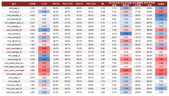 图表5:动量&反转因子在全市场范围内的有效性检验结果