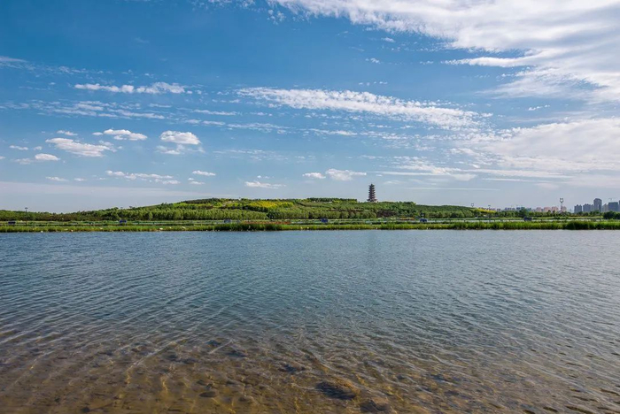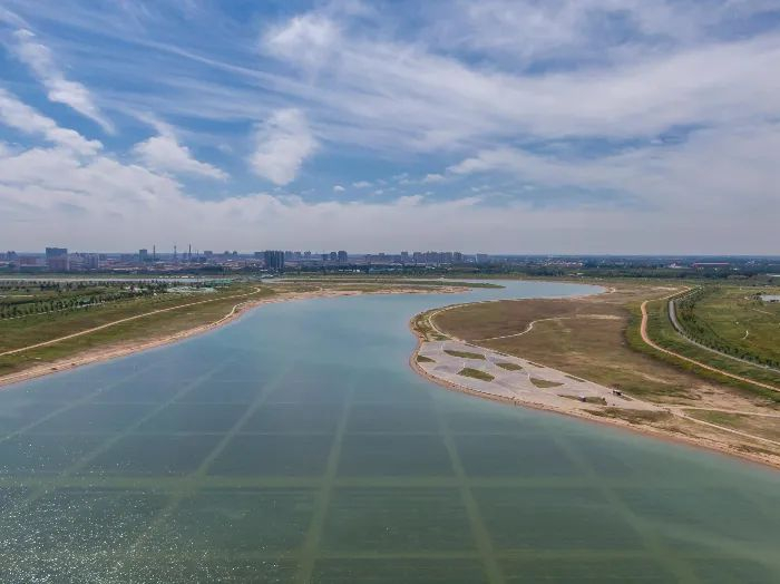 各具特色的溢流堰、湿地、湖泊、游园……一个个标志性景观节点相继出现在滹沱河沿岸,形成一条美不胜收的沿河景观带。