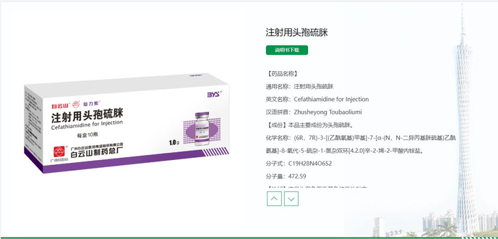 (注射用头孢硫脒,来源:白云山制药总厂官网)