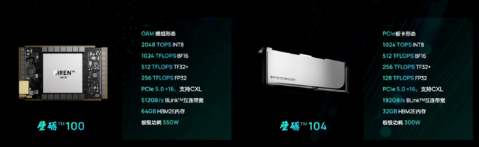 除了BR100通用GPU芯片之外,壁仞科技还发布了OAM服务器——海玄,以及基于BR100的OAM模组——壁砺100,基于BR104的PCIe板卡产品——壁砺104,以及自主研发的BIRENSUPA软件平台,该平台支持主流深度学习框架。
