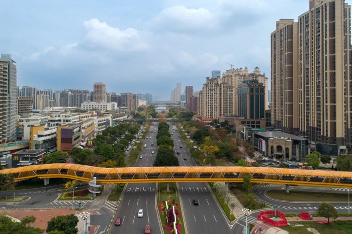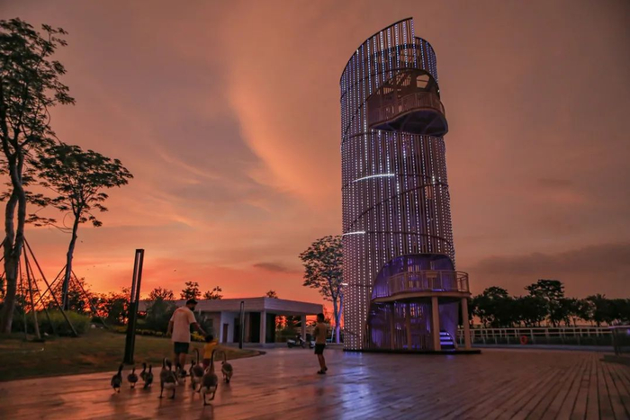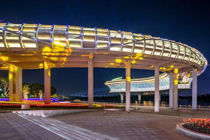 金凤凰广场是国内首个以凤凰为主题的架空慢行系统绿草地公园。