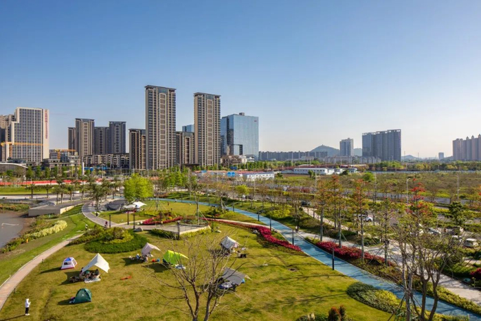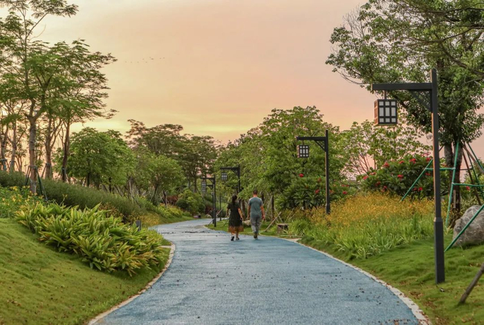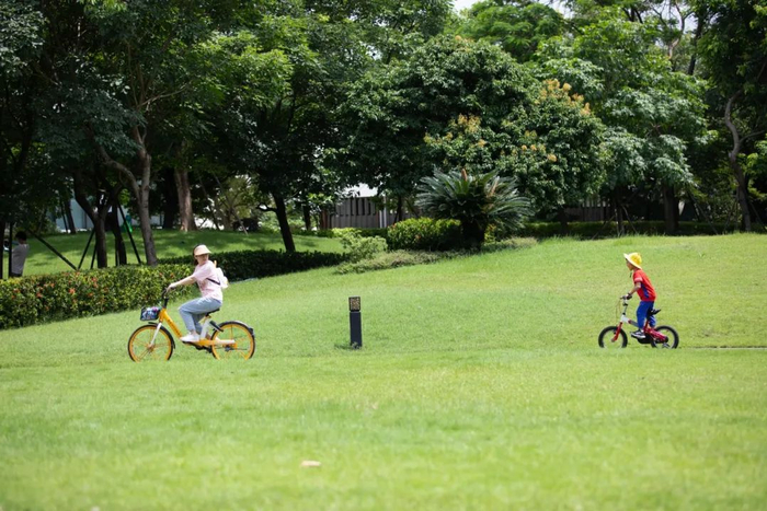 智谷公园距离华侨城欢乐海岸大概5至6分钟车程,很适合住附近的人过来散步、骑车、遛娃。