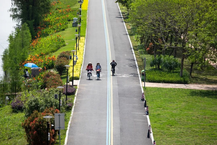 由于这里风景优美,也吸引了不是市民前来健身,在这里慢跑骑行,满目皆景。