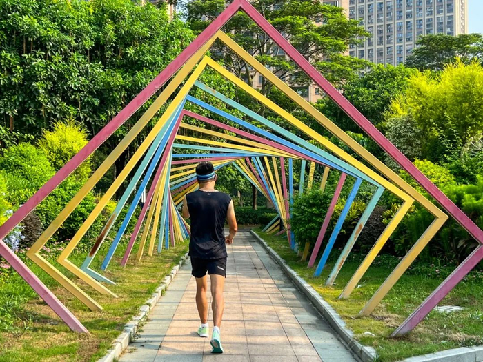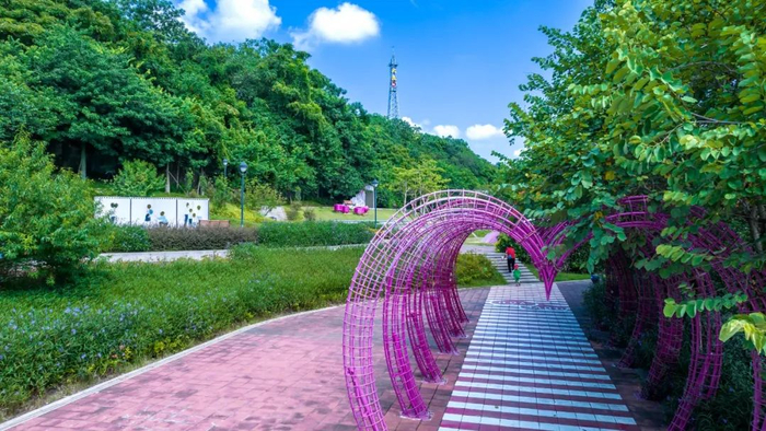行走在顺峰半马健身步道,一路上碧草如茵,花香鸟语。步道沿线还设置了多处休息点、卫生间、直饮水设施、停车场及健身设施等。
