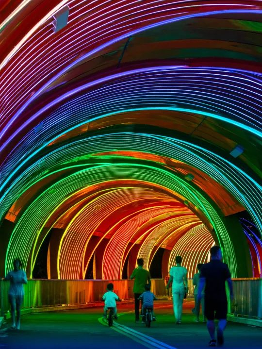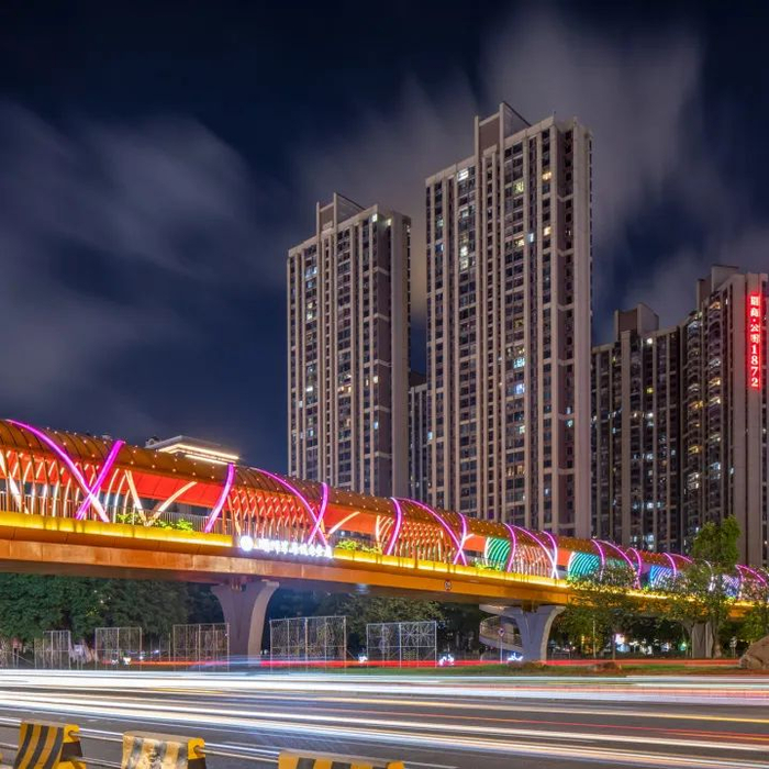夜间的健身步道更是令人惊艳,炫彩灯光点亮大良,在健身、散步的同时,还可以欣赏大良的夜景。