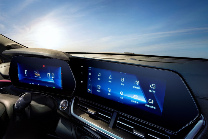新车座舱以驾驶员为中心,悬浮式双10.25英寸渐层智慧屏向驾驶员倾斜约9度,不仅方便驾驶员进行操作,同时营造出更加运动的视觉效果。