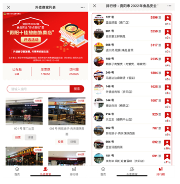 下一步,资阳市市场监管局将根据消费者投票排名组织开展“你点我检”食品安全监督抽检,届时将邀请市人大、政协及消费者代表参与监督抽样。与之同步,平台公司下属送餐员在取餐同时,根据商家生产经营现场情况填写“入网餐饮服务单位食品安全状况评分表”,为年底入网餐饮服务单位评优工作提供更加强有力的信息支撑。
