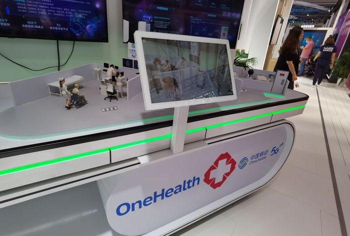 8月10日,世界5G大会在哈尔滨启幕。记者走进会场的中国移动展区,被5G+智慧医疗展台吸引。沙盘上展示着远程会诊、5G+VR探视等应用场景。记者将滑道上的摄像头移向不同的场景,屏幕上就会显示相应的案例介绍,清晰明了。