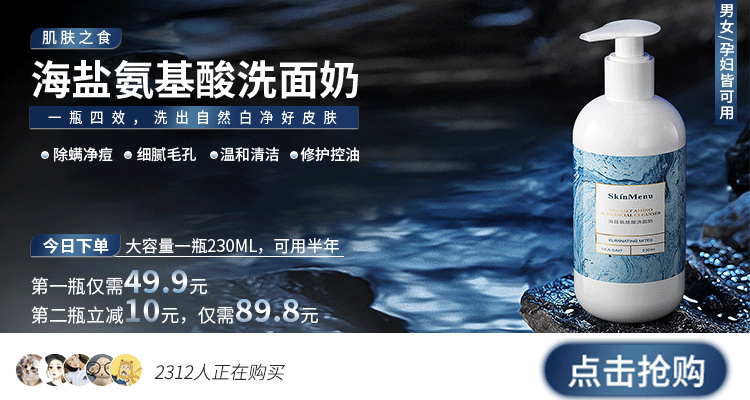 清洁的关键步骤就是除螨,这款洗面奶能通过海盐+植物双萃,减少螨虫滋生。