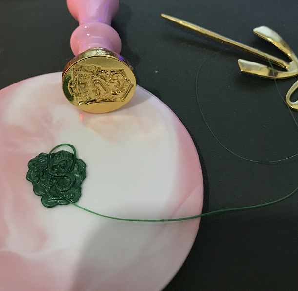 不要以为盖出一个圆圆的火漆币很简单,当融化的蜡液从勺中倒出,一切就不是我的手能控制的,小心地拿起早在一旁等候的章,瞄准脱模垫上的那摊将凝未凝的蜡液,“Biaji”——盖上去。