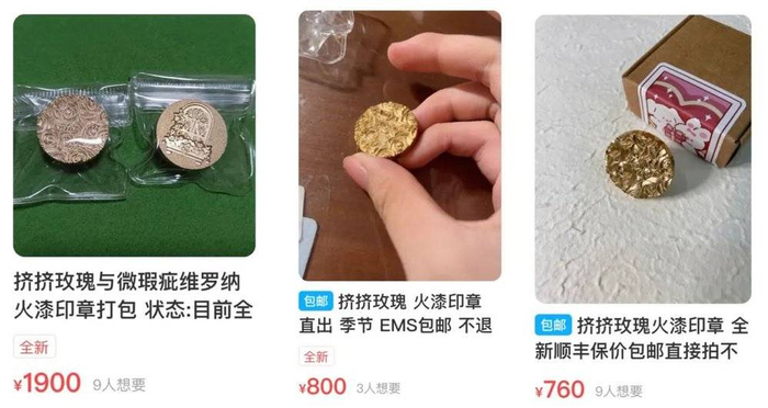 有人享受盖章的过程,也有人唯爱盖好了的美丽成品。那些错过了开团、求不到章子或是像我一般囊中羞涩的玩家,会转而购买其他人盖好的火漆币。