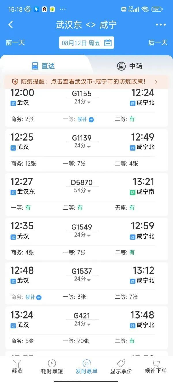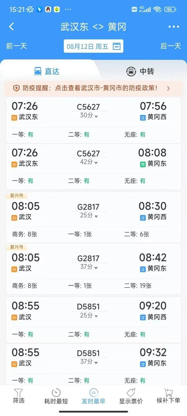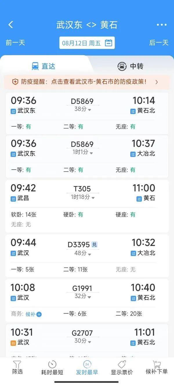 8月11日下午,记者查询12306客户端发现,武汉东站开往黄冈、黄石、咸宁的车票已经开始售卖。