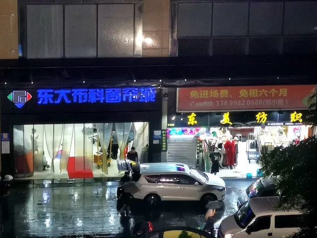 东门布料辅料窗帘批发城挂出“免进场费、免租六个月”的广告