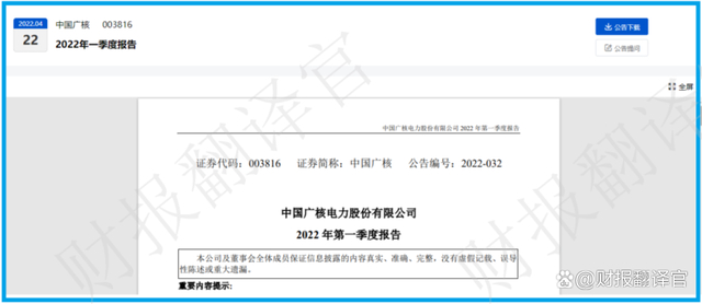 而本文既没有推荐中国广核这只股票,也没有说中国广核公司有多么的好,而是精炼翻译该企业的财报。