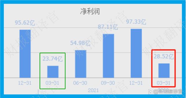 2021年第一季度,公司的业绩为23.74亿元。到了2022年第一季度,这家企业的净利润就达到了28.52亿元,同比增长了20%。
