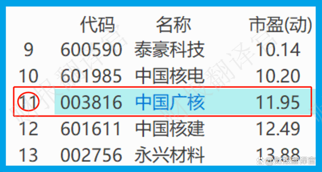 而这个市盈率,在A股核电核能概念板块138家上市公司中,从低至高排列,位居第11位。这个名次也不低,说明其目前并没有被高估。