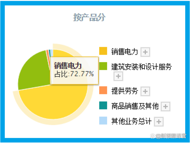 这家企业销售电力的收入占比为73%,建筑安装和设计服务的收入占比为25%。