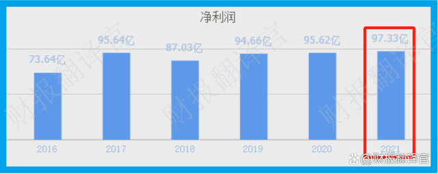 从2019年开始,该公司的历史业绩已经连续三年实现了增长,并在2021年以97.33亿元的净利润创出了历史新高。