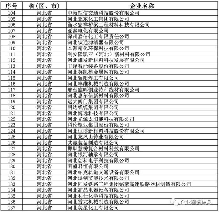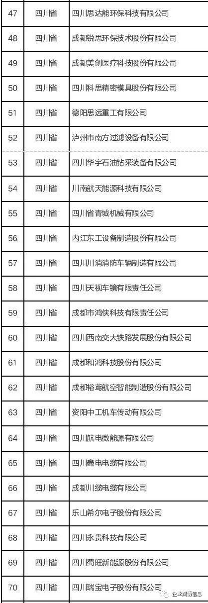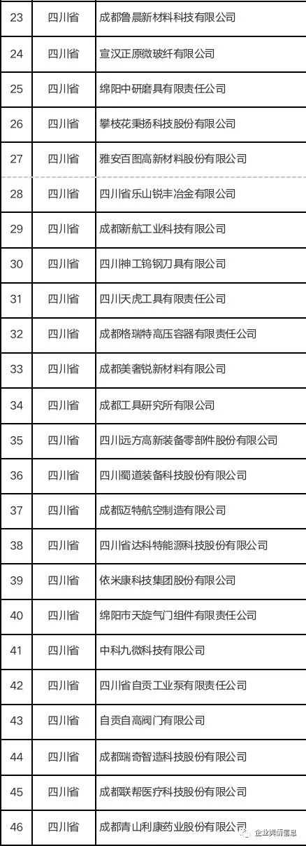 第四批国家级“小巨人”4357家公示全名单5(四川138家、河北137家、福建133家、辽宁76家)