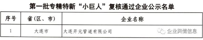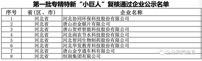 第一批专精特新“小巨人”复核通过企业公示名单