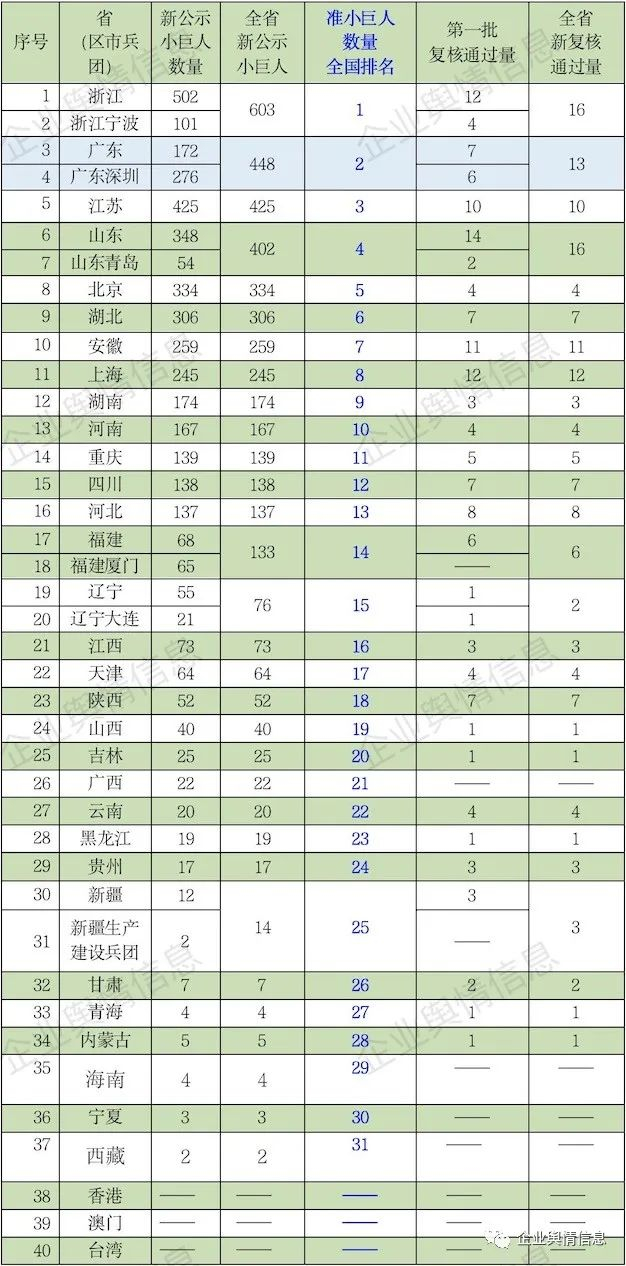 第四批专精特新“小巨人”企业培育和第一批专精特新“小巨人”企业复核公示名单,于8月8日开始,由全国工信主管部门公示征求意见,《企业舆情信息》利用大数据工具提取各地信息,独家整理加工出新公示的准“小巨人”企业共计4357家,以飨读者。